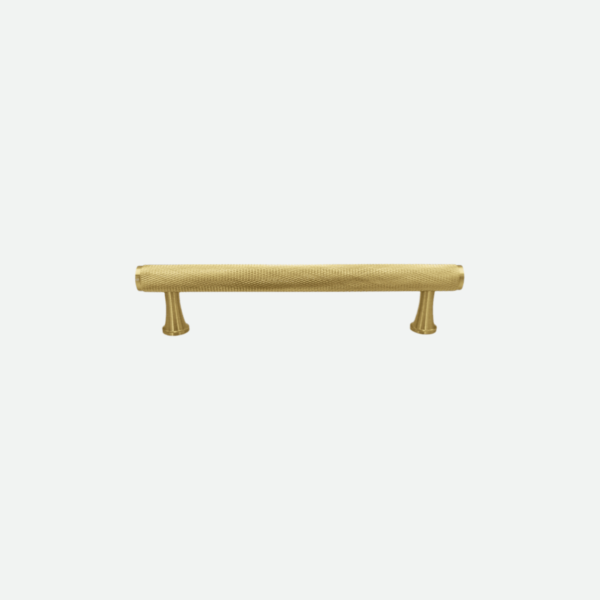 Håndtak laget av messing. BUNBURY håndtaket har overflate som ligner diamantmønster. Den teksturerte overflaten garanterer behagelig følelsen ved berøring og forsterker estetikken i rommet. Den riflete design og kjegleformet føtter bidrar til å gi håndtaket elegant og moderne utseende. Spennende og luksuriøse detaljer får hverdagen til å skinne litt ekstra. Håndtaket passer like godt på kjøkkenet som på kommoder eller garderober.
