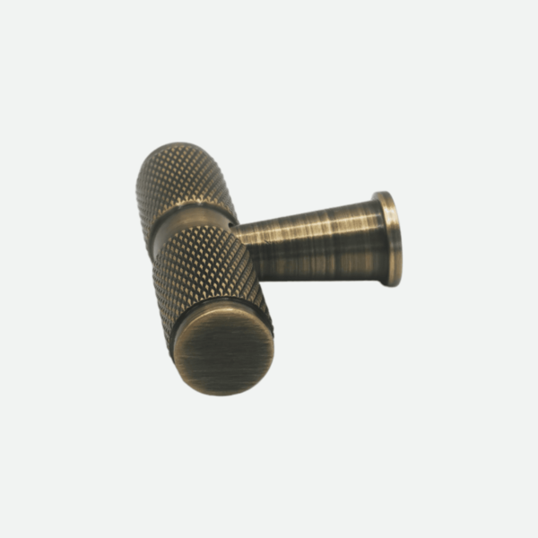 GEMENA en av våre mest solgte håndtak. Håndtaket har overflate som ligner diamantmønster. Antikk messing er nydelig farge som pynter opp og passer i moderne hus. T-bar GEMENA i antikk messing farge tilbyr både stil og funksjonalitet. Den teksturerte overflaten garanterer behagelig følelsen ved berøring og forsterker estetikken i rommet.