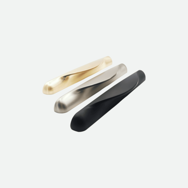 Håndtaket er et praktisk og estetisk tiltalende valg for både kjøkken og andre møbler. Den buede formen gir et komfortabelt grep, noe som gjør det enkelt å åpne og lukke skuffer og skap. Håndtaket er designet med funksjonalitet i fokus, og passer inn i de fleste kjøkken og interiørstiler.