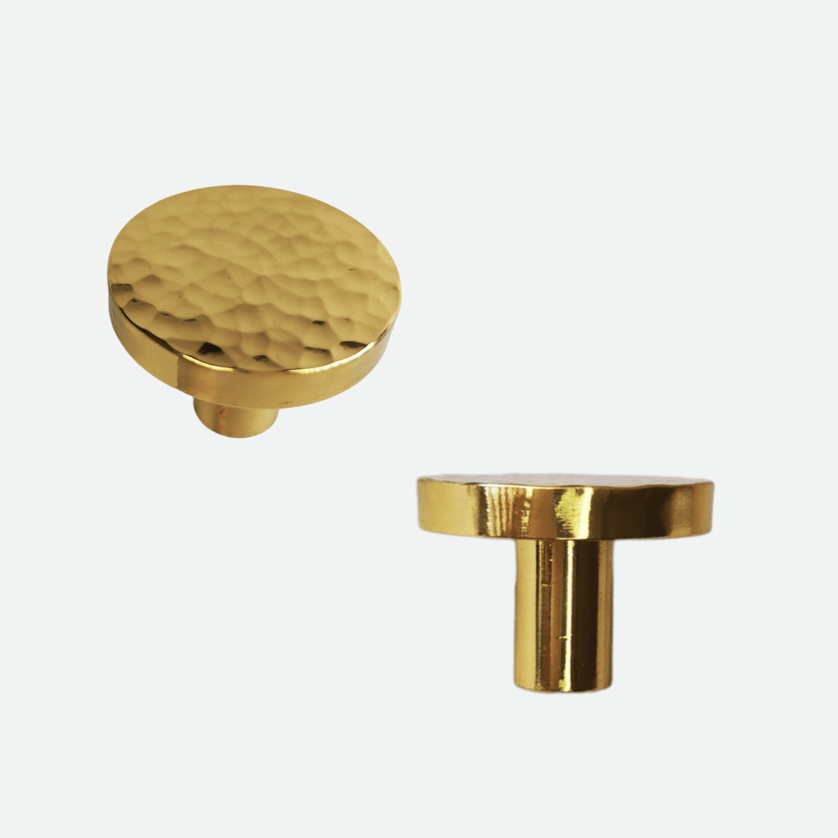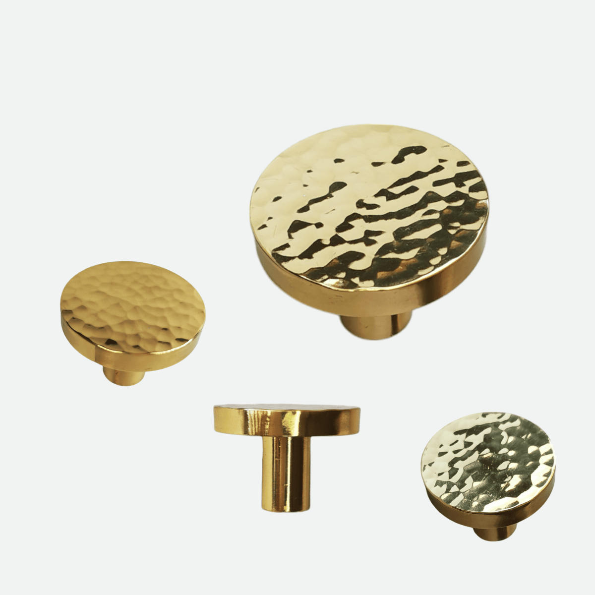 Våre messingknotter i Ø25, 28 og 32 mm gir skapene dine en unik karakter. Den hamrede finishen og håndlagde kvaliteten sikrer et eksklusivt utseende som varer. Perfekt for kjøkken, bad og garderobe. Enkel montering og fantastisk resultat. SEM-kolleksjonen har noe for enhver smak.