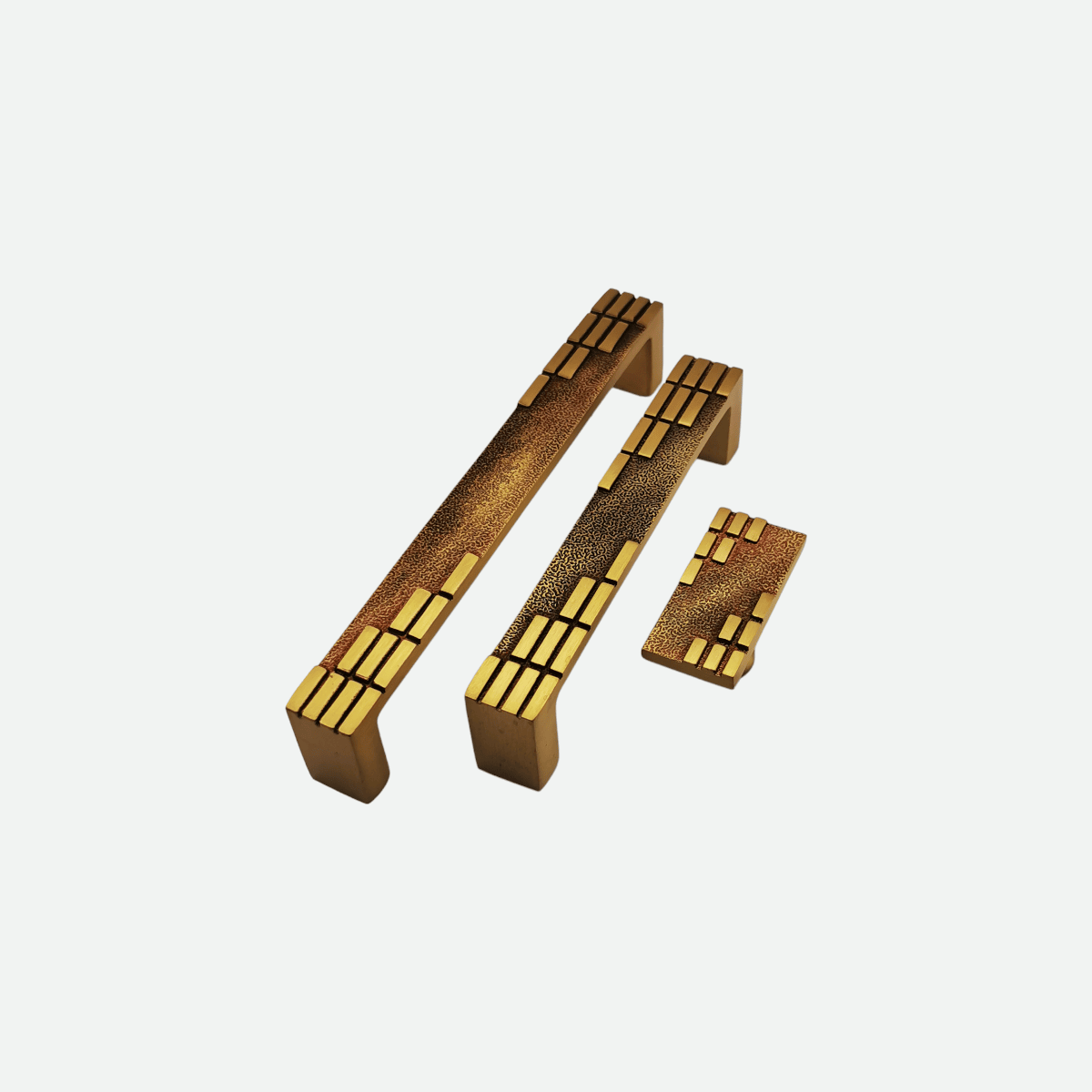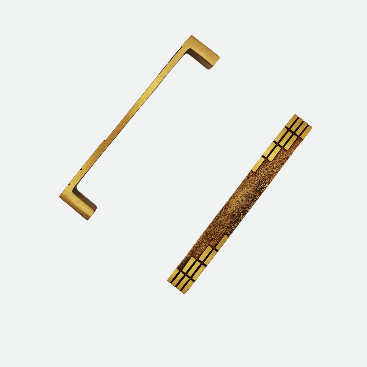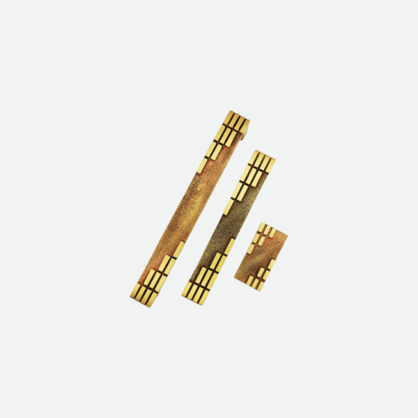 VITIM håndtak er et elegant håndtak med gullaktige ornamenter.